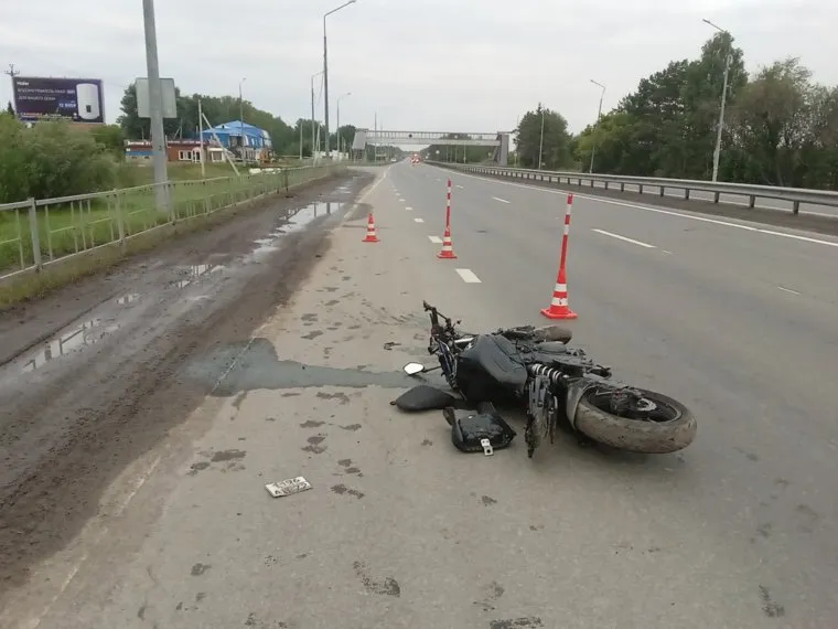 На трассе под Тюменью мотоциклист влетел в авто дорожных служб. Фото