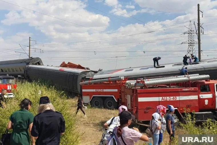 В Волгоградской области в понедельник 29 июля в результате столкновения с КАМАЗом сошел с рельсов пассажирский поезд. Предварительно известно, что водитель грузовика пытался проскочить железнодорожный переезд. В СМИ со ссылкой на экстренные службы пишут, что в результате крушения могли пострадать десятки человек. Всего в поезде ехали 812 пассажиров. Сейчас к месту аварии стянуто 109 единиц спецтехники. Кадры с места ЧП — в фоторепортаже URA.RU.