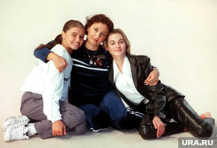 Абсолютная чемпионка мира и Европы 2000 года Алина Кабаева (на снимке слева) и чемпионка мира и Европы Юлия Барсукова (справа) и главный тренер спортсменок Ирина Винер (посередине)