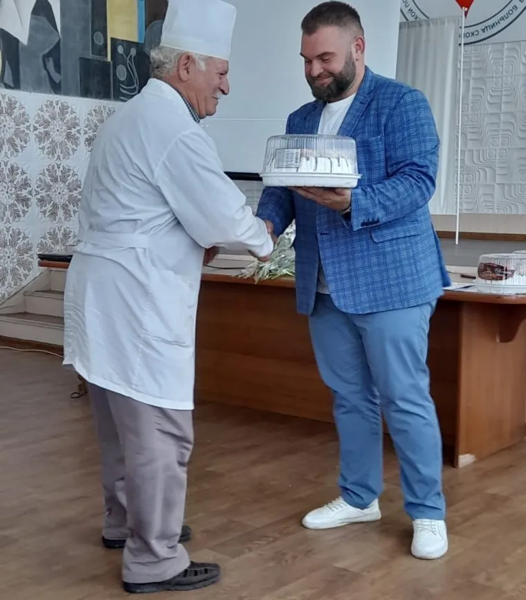 Зам. главврача Плутахин вручает сотрудникам Курганской БСМП сладкий подарок (фото 2023 года)