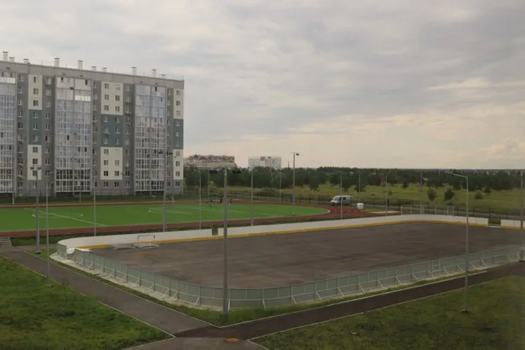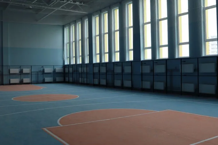 В новой школе будет большая спортивная зона. В спортзалах есть душевые и раздевалки. Сделан хоккейный корт, стадион с прорезиненным покрытием, детские и спортплощадки.