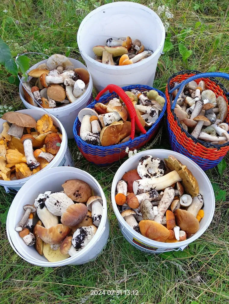 За один поход в лес мужчине удалось собрать около семи ведер грибов. В основном это белые, подосиновики, подберезовики и лисички.