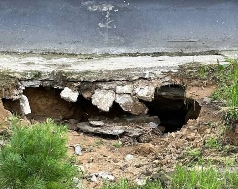 «Дождем размыло землю у основания домов по адресам: проспект Ленинградский,1 и 3 со стороны двора. Ремонт дворов был в 2023 году. Размер дыр составляет более 1,5 метра», — сообщили в группе «ЧП | ДТП | Новый Уренгой» в VK.