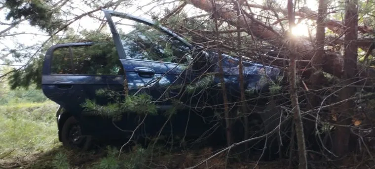 Курганские пенсионеры на машине влетели в сосну. Фото