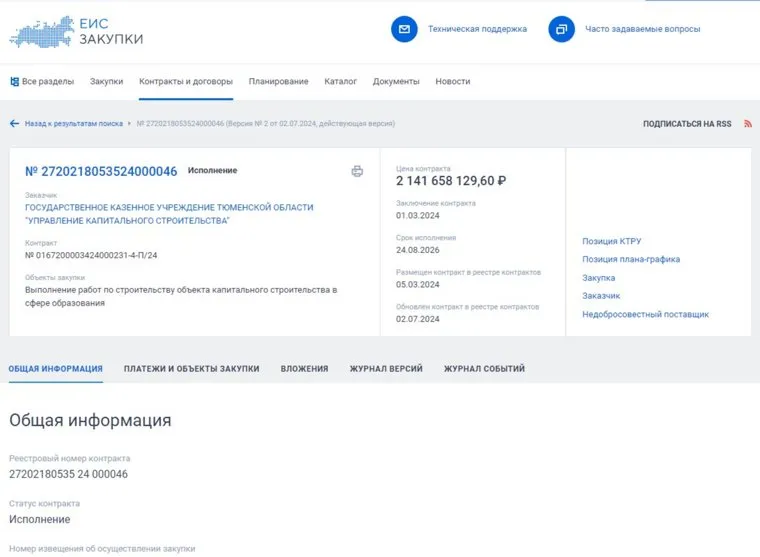 Как это ни прискорбно, но крупнейший за первое полугодие 2024 года контракт достался компании, которая к Тюмени не имеет практически никакого отношения. ООО «Ремистр», которая за 2,14 млрд рублей построит школу в микрорайоне «Ямальский-1», зарегистрирована в Москве.