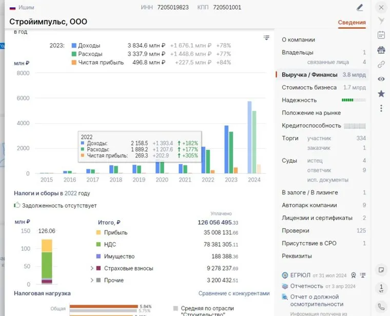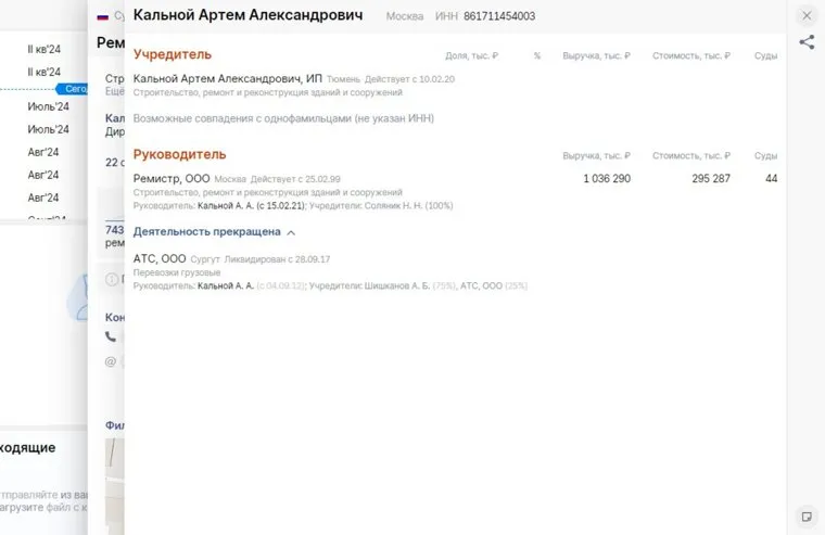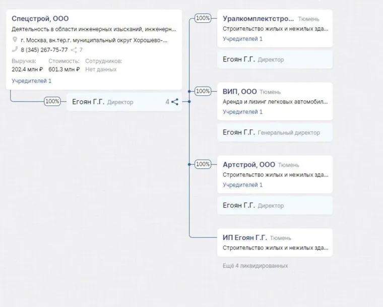 Итак, знакомимся: ООО «Спецстрой», зарегистрированное в Москве. Единоличный владелец и директор — Гор Егоян, чье ИП числится в Тюменской области. Компания существует с 2020 года, а вот Егоян владеет ей с 2023 года. Именно с этого момента начинается более-менее значимая деятельность фирмы. Впрочем, именно «более-менее»: до госконтракта в Тюмени, крупных подрядов эта организация не получала.