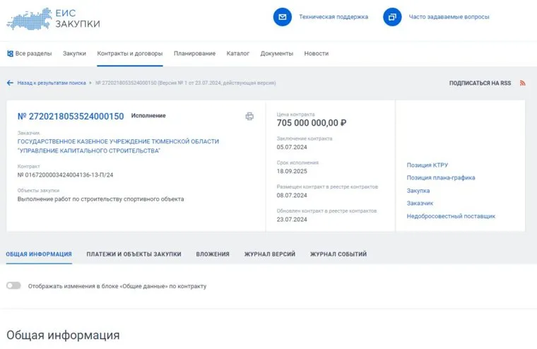 А вот с первым катком, который должен появиться уже в этом году на улице Народной, история интереснее. В топ этого года контракт попал благодаря тому, что именно в 2024 тюменское правительство взыскало с подрядчика небольшой штраф за нарушения условий контракта. А еще в 2024 году сумма контракта внезапно сменилась с 432 млн на 620 млн рублей. А исполнитель — тот самый «Ремистр», который получил крупнейший госконтракт предыдущих шести месяцев.
