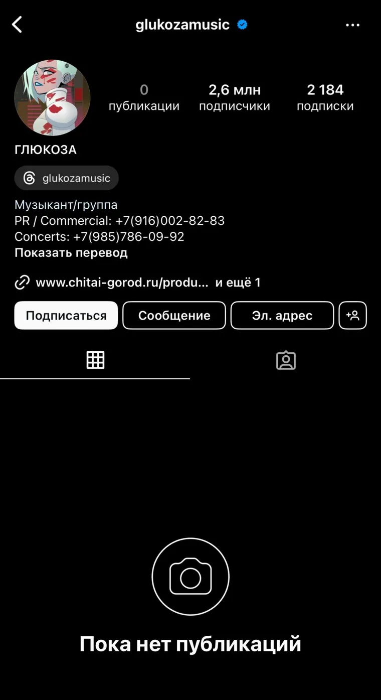 Все фотографии на странице Глюкозы в Instagram (принадлежит компании Meta, которая признана экстремистской и запрещена в России) удалены