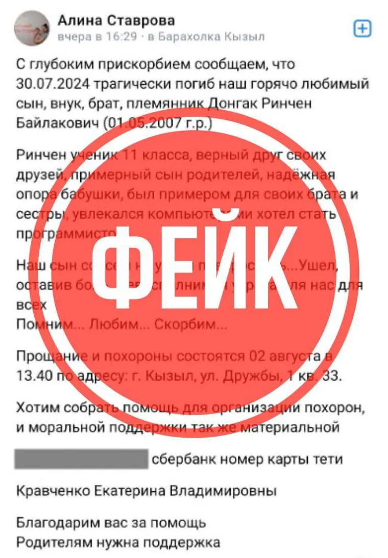 Скриншот поста мошенников