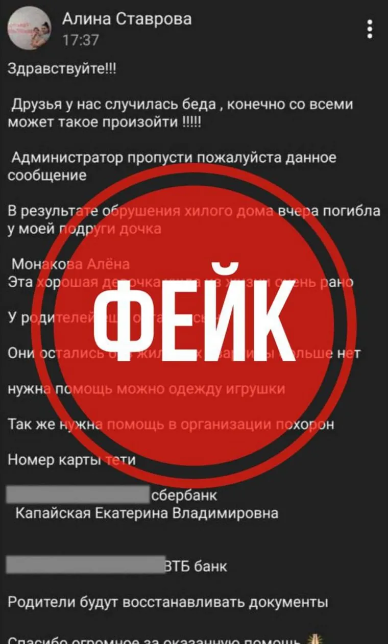 Мошенники нашли способ заработать на трагедии в Нижнем Тагиле. Скрин