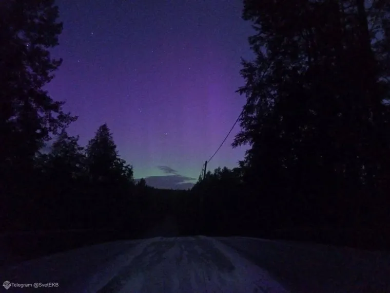 «Северное сияние заметили этой ночью в Свердловской области! Фото сделал наш читатель на широте Екатеринбурга в поселке Северке. Красота!» — пишет telegram-канал «Свет Екб».