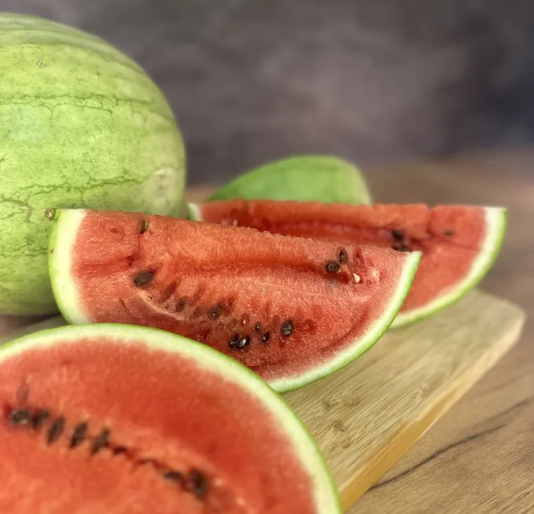 Мякоть арбуза сорта «Малиновый сорбет» имеет малиновый окрас
