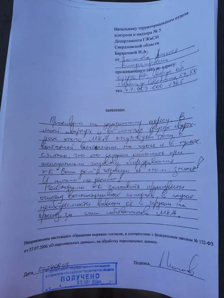 «Например, Госжилинспекция может обязать жильцов переделать вентиляцию совместно с управляющей компанией. А пока этого не сделают, отключить всему дому газ», — говорит мужчина. Он уже написал заявление в департамент государственного жилищного и строительного надзора (ГЖиСН) Свердловской области. Агентством туда направлен запрос, ответ на момент публикации не поступил.