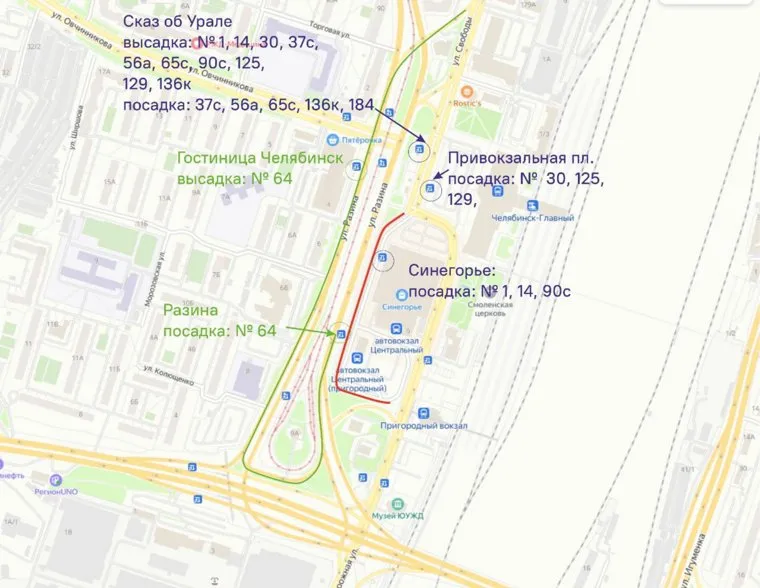 В Челябинске временно изменят места остановок транспорта у автовокзала. Карта