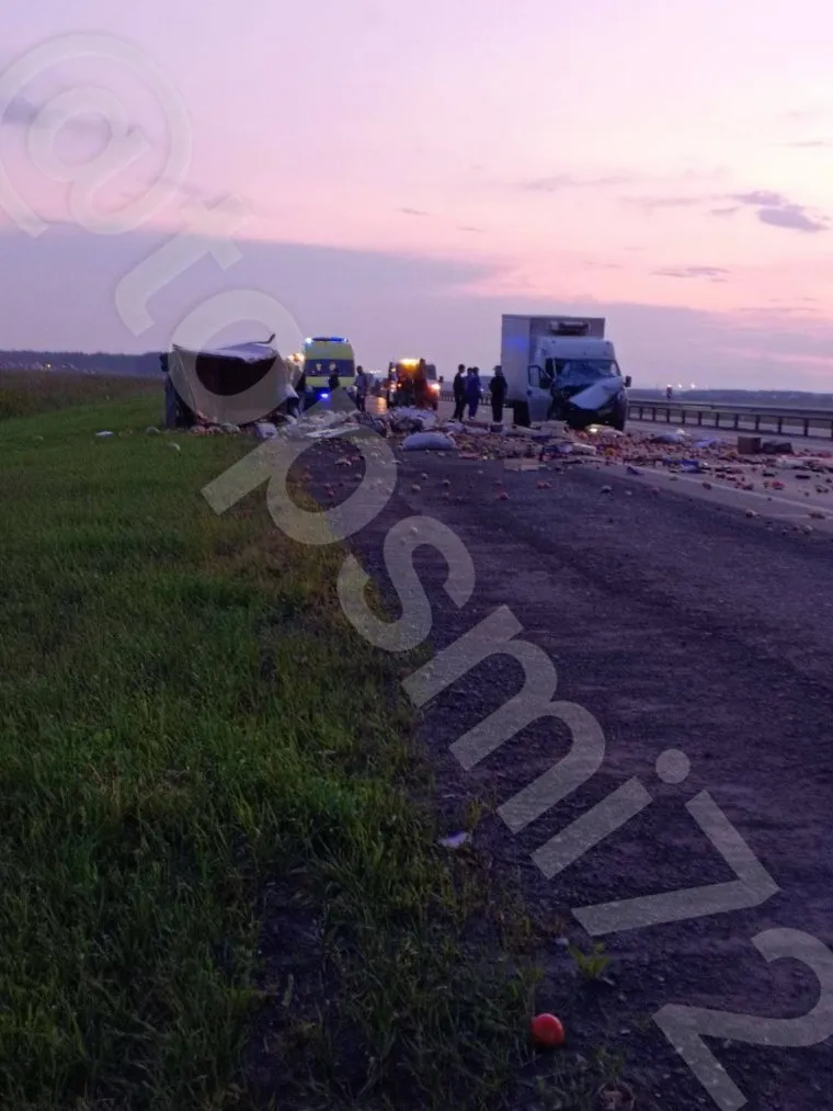 На трассе под Тюменью в ДТП газель разорвало на две части. Фото, видео
