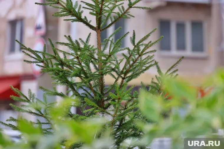 На аллеи высадили сибирские ели