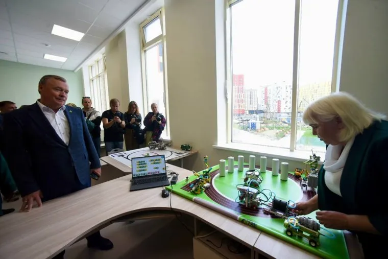 Чиновники осмотрели близлежащую территорию, прошлись по этажам школы и убедились в готовности нового здания принять учеников. Школа оснащена современным оборудованием, тремя спортивными залами, уличными площадками для начальных, средних и старших классов. Здесь и футбольное поле, и зал для легкой атлетики, и площадка воркаута, и класс единоборств — все возможности для развития способностей детей. Однако главной фишкой школы стал класс киноиндустрии. Эту дисциплину будут изучать дети с начальной скамьи. По словам мэра, ученики будут получать образование с учетом запросов сегодняшней экономики.