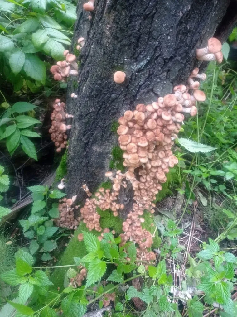 На фотографиях видно, что деревья буквально усыпаны грибами. Девушке удалось собрать семь полных мешков и одно ведро опят.