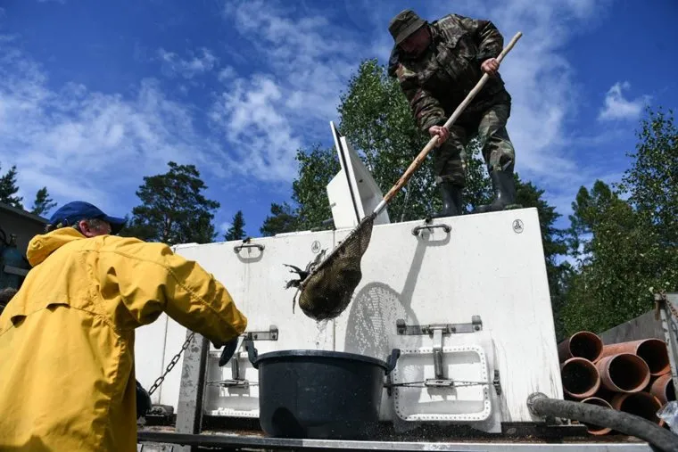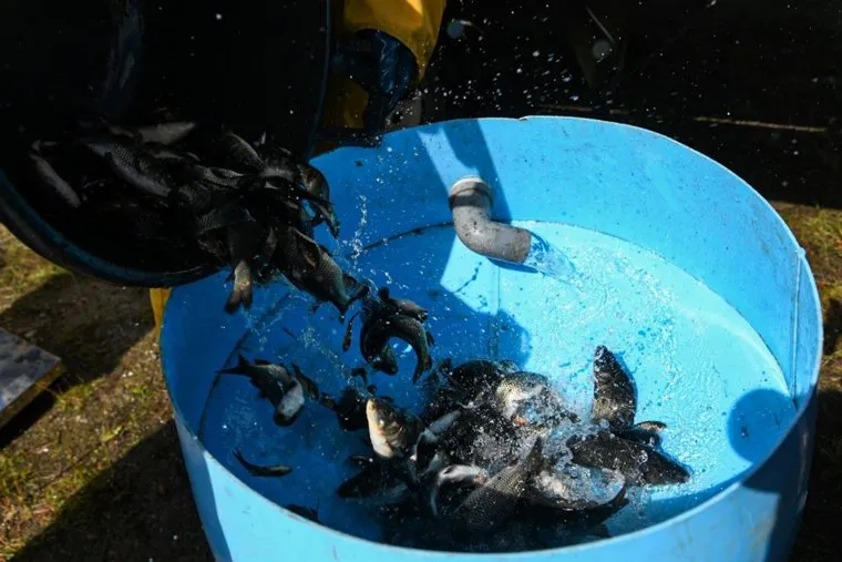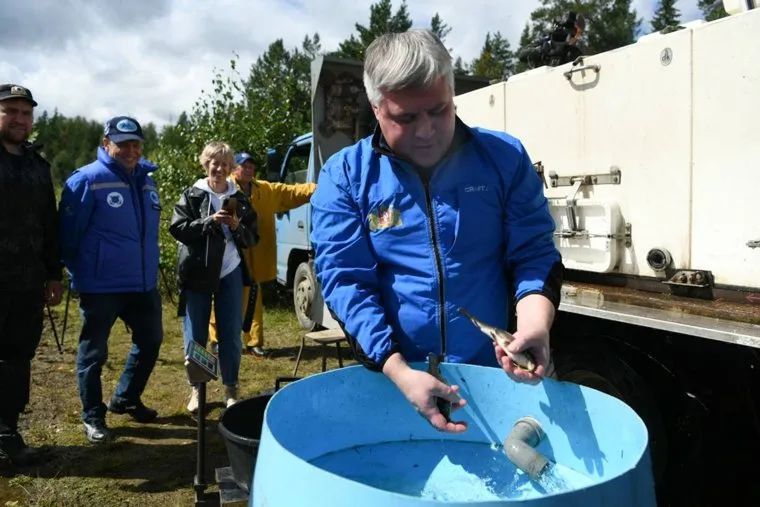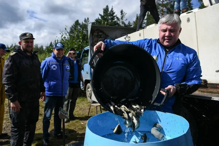 Этот водоем выбрали неслучайно, в 2023 году там было слишком мало воды, а после ремонта гидротехнического оборудования стало возможным запустить рыбу. Новых жильцов в водоем выпускали через специальный рукав.