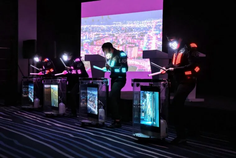 Сопровождало открытие Центра яркое барабанное шоу от The Noize – артистов Чемпионата Мира по Футболу в Катаре 2022 и Международной выставки-форума «Россия»