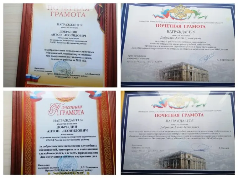 Начальство ценило эффективного сотрудника. При Добрыдине выросли показатели раскрываемости по наркопреступлениям. За непродолжительный срок он получил 32 поощрения. Бывший начальник кетовской полиции Дмитрий Пьянников сделал его заместителем начальника полиции.