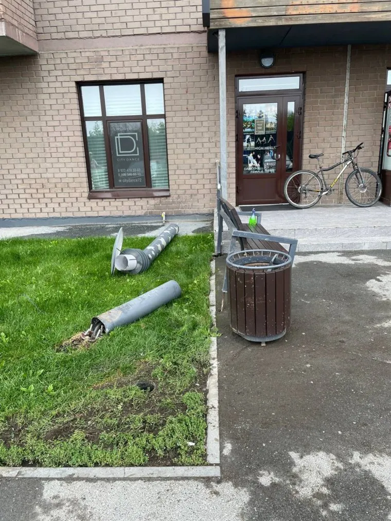«Проходили мимо, увидели, что выворочен „с корнями“ фонарный столб, вырвана лавочка и помята велопарковка. На крыльце находится склад „Самоката“, где могли находиться курьеры», — сообщили очевидцы.