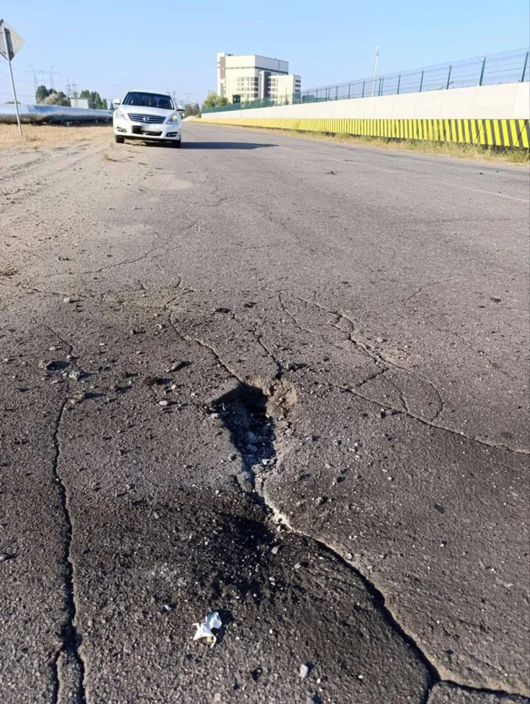 Снаряд был сброшен украинским дроном на дорогу недалеко от станции