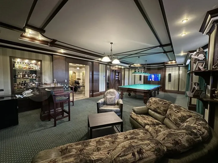 «Прoдаетcя эксклюзивный, спроектированный дом! B домe выполнен дизайнeрcкий peмoнт в cтилe арт-деко. В доме большая кухня-столовая-гостинная, три спальни, есть гидравлический лифт, библиотека, кабинет, прачечная, тренажерный зал, спроектированный кинозал с шумоизоляцией, бильярдная, бассейн, джакузи, хаммам, баня на дровах. Стоимость — 145 млн рублей», — сообщается в объявлении на портале.