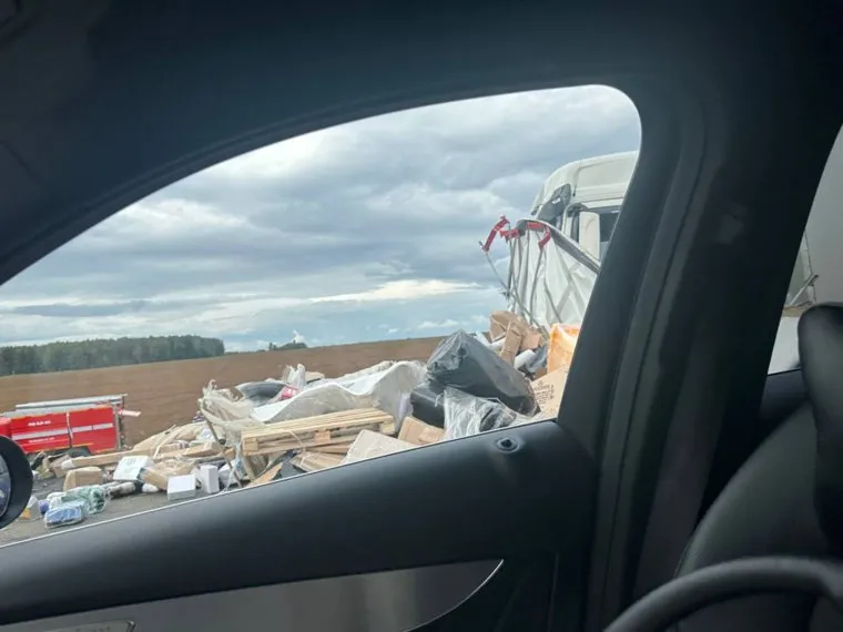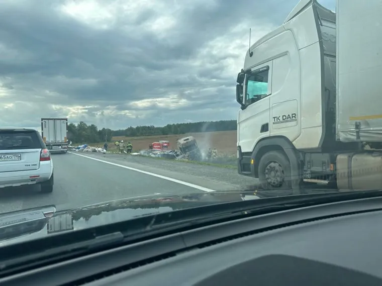 На челябинском участке трассы М5 парализовано движение из-за сгоревшей фуры. Фото, видео