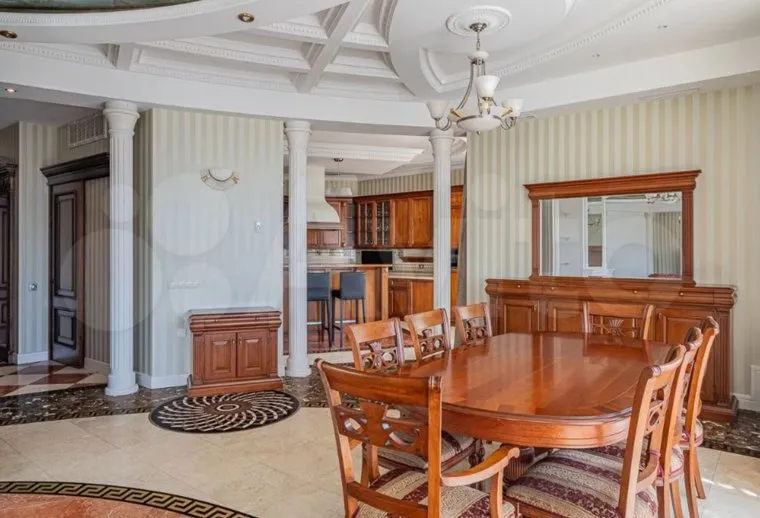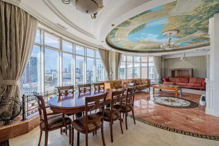 «Многокомнатная квартира располагается на 10-11 этаже дома. Имеется своя терраса около 100 квадратных метров. Квартира двухуровневая. Прихожая с большой гардеробной комнатой, кухня-гостиная общей площадью 123 квадратных метров, гостевой санузел, комната со своей ванной и гардеробной», — говорится в объявлении.