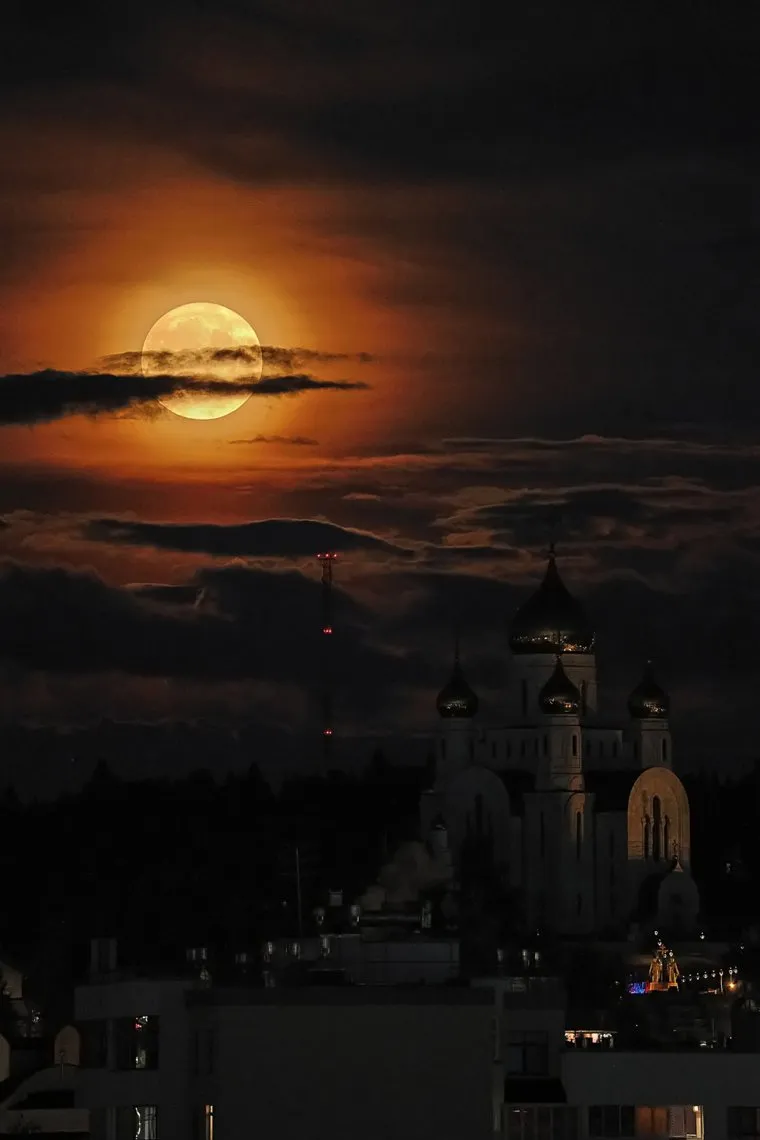 «Фото на смартфон. В суперлуние Луна выглядит на 14% больше и примерно на 30% ярче», —подписала снимки фотограф из Сургута Марина Киприна. Природное зрелище также наблюдал и фотограф из Ханты-Мансийска Сергей Коршилов. В своих соцсетях он опубликовал снимки, на которых изображена огромная Луна над городским храмом.