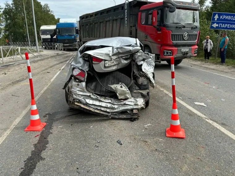 Уточняется, что грузовик въехал в стоящие перед пешеходным переходом «легковушки». Одну из них от удара отбросило на маршрутный автобус «Тюмень-Якуши». Пассажиры автобуса не пострадали, водитель одного из легковых авто получил ранения.