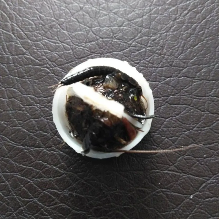 Существо на фотографии напоминает обыкновенную уховертку. По данным сайта Россельхозцентра, она является всеядным насекомым из отряда кожистокрылых. Уховертки часто обитают рядом с жильем человека, способны наносить вред сельскохозяйственным и огородным культурам. Для человека они не опасны. Но могут больно ущипнуть клешнями, которые расположены в задней части тела.