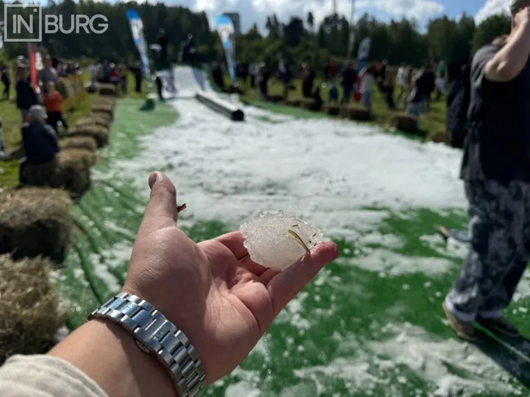 На Уктусе в Екатеринбурге посреди августа появился снег. Его заметили очевидцы на фестивале экстрима.