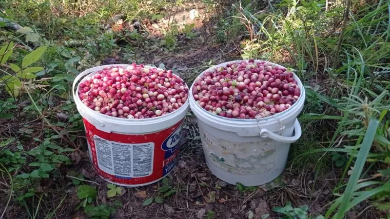 Жительница Свердловской области собрала два ведра клюквы — самой полезной в мире ягоды. Также женщина поделилась местом сбора и отметила, что ягод в лесу много.