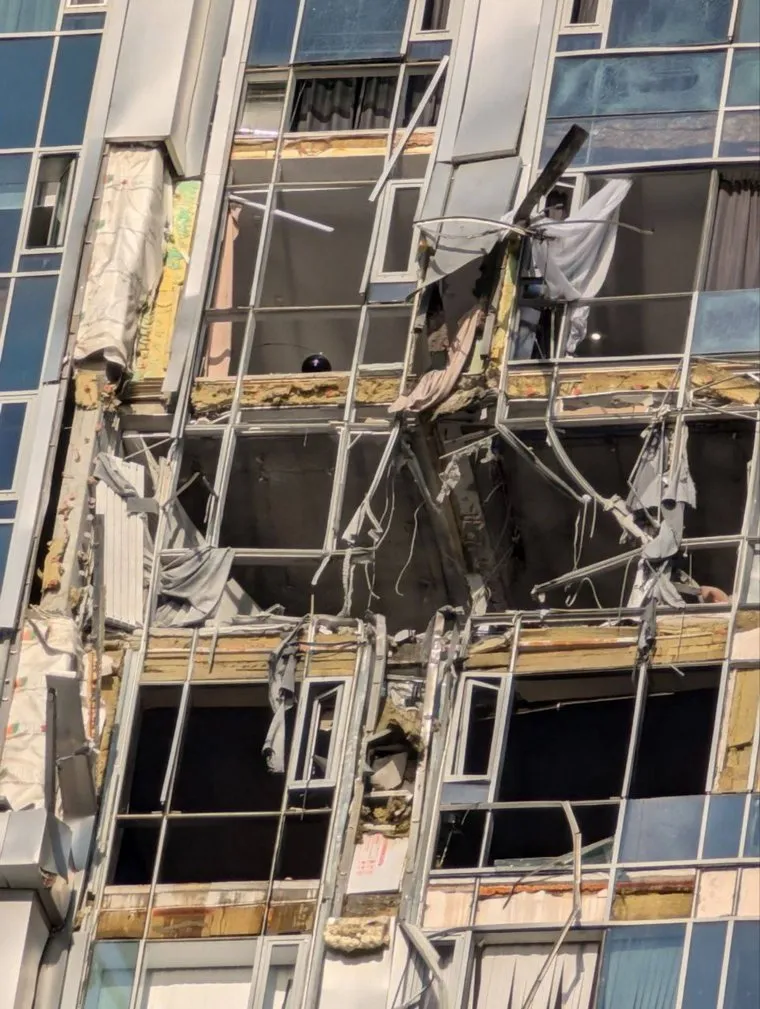 Место падения беспилотника ВСУ в ЖК «Волга Скай»