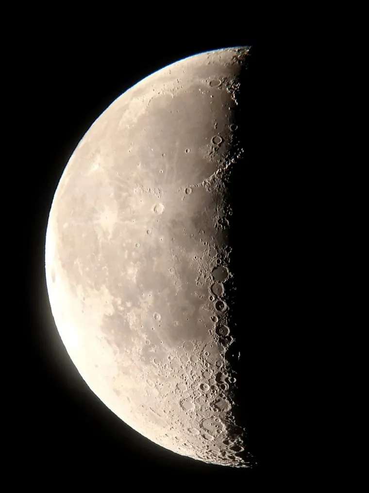 «Такую Луну мы наблюдали сегодня на нашей „Прогулке по Млечному Пути“. Фото сделано с помощью телескопа SW Dob 6 + камера смартфона Xiaomi Redmi 9», — написал Полищук в соцсети «ВКонтакте».