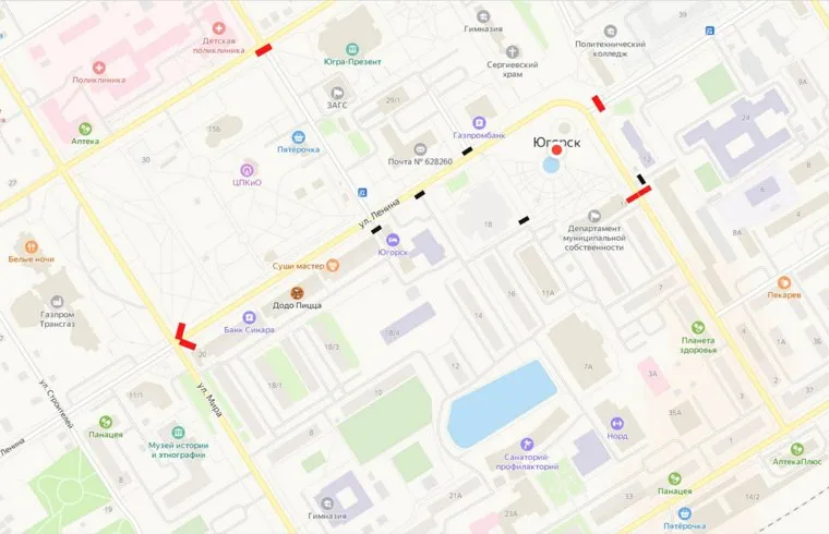 С 24 августа по 1 сентября будет перекрыт проезд между фонтанной площадью имени Салахова и здания «Газпром трансгаз Югорск» КСК «Норд». 31 августа с шести утра до 21:00 будет органично движение по улице 40 лет Победы на участке от улицы Железнодорожной до Ленина; на Ленина от улицы 40 лет Победы до улицы Мира и участок улицы Спортивная от улицы Ленина до улицы Попова. С 21:00 до 23:00 будет ограничено движение на участках: улица Ленина от 40 лет Победы до улицы Мира; на улице Спортивная от Ленина до Попова и на улице 40 лет Победы до улицы Ленина, 11.