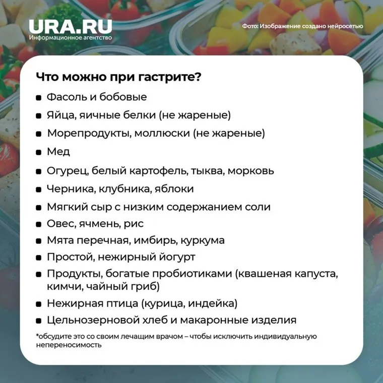 Инфографика: рекомендации в питании при гастрите