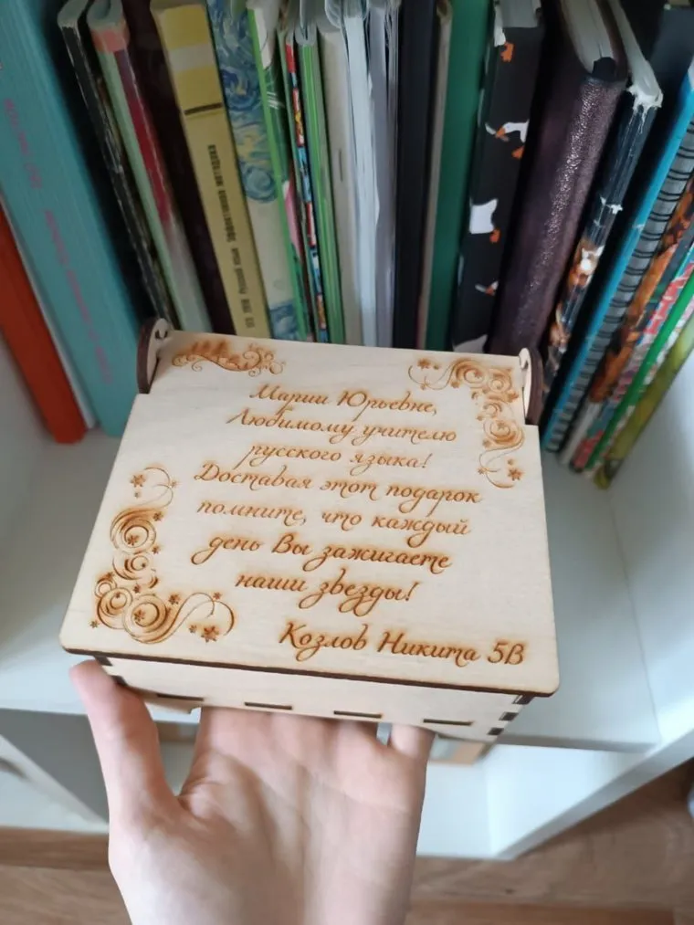 Преподаватель русского языка и литературы частной школы Rittel School Мария Григорьева была приятно удивлена, получив в День знаний мягкое розовое покрывало, а ее коллега Мария Плеханова, тоже учитель русского, — деревянную шкатулку с гирляндой внутри. Преподаватель литературы невьянской школы №4 Юлия Алыпова восхищается детскими hand-made поздравлениями.