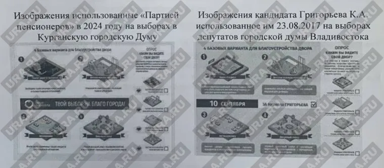 «„Партия пенсионеров“ скопировала агитационные материалы у депутата от ЕР из Владивостока Кирилла Григорьева, который баллотировался в думу в 2017 году. Они практически идентичны, сейчас идет суд. Мы подали иск о снятии пенсионеров с выборов в думу Кургана», — заявил Камшилов.