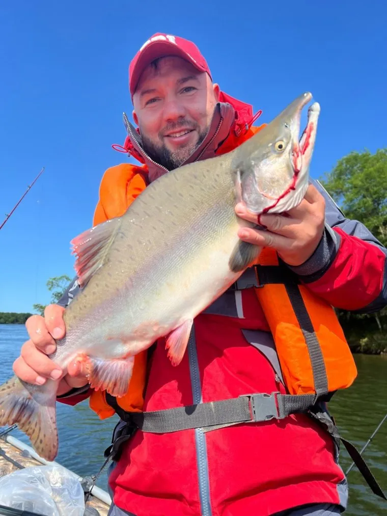 Он поделился, что ему удалось поймать кижуча, горбушу, кету и гольца. Рыбачил югорчанин на реке Большая.