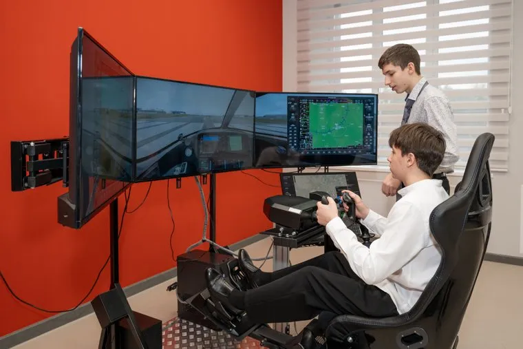 В школе предусмотрено современное оборудование, среди которого – авиасимулятор для отработки полётов, голографические учебные станции