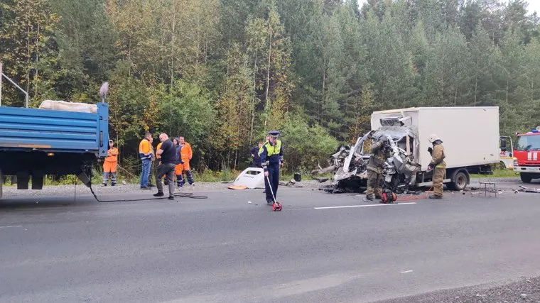 На Серовском тракте фургон влетел в КАМАЗ, есть погибший. Фото, видео