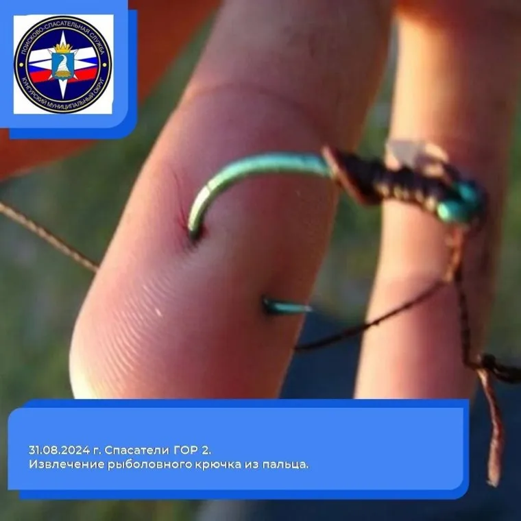 «На телефон службы 31 августа поступил звонок — по улице Ситникова в Кунгуре требуется помощь спасателей. Необходимо извлечь рыболовный крючок из пальца. На место выехали спасатели ГОР 2», — написано в группе ведомства в соцсети «ВКонтакте».