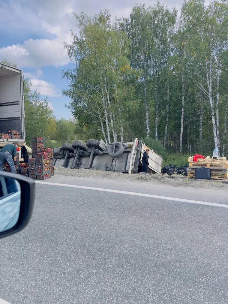 В Челябинской области перевернулась фура с яблоками. Фото, видео