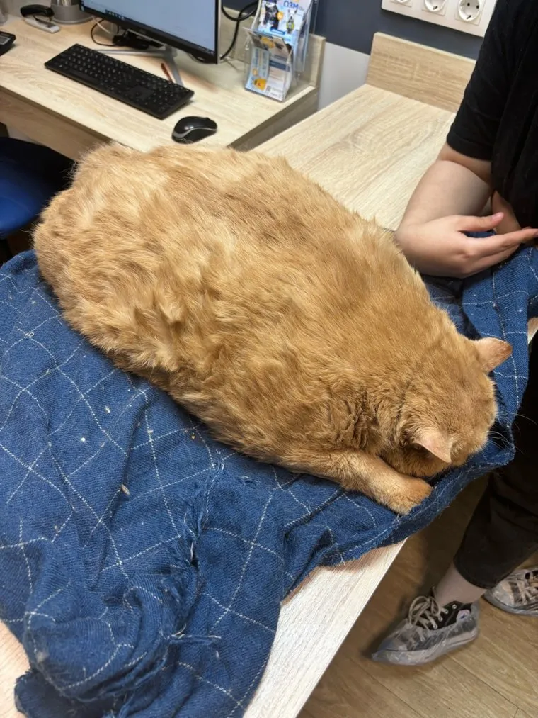 «Это Крошик. Его вес составляет 17 килограммов, и он мог бы войти в пятерку самых толстых котов мира, но единственное, что он хочет, — это заново научиться ходить. В клинике ему не смогли сделать УЗИ из-за огромной жировой прослойки», — сообщили в группе приюта в соцсети «ВКонтакте».