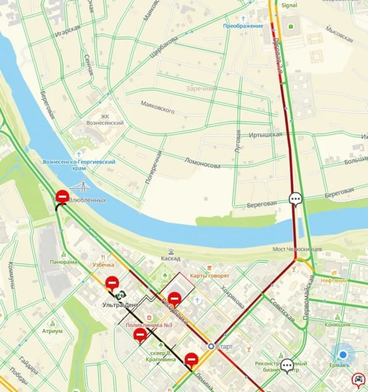 «Тюмень, пробка, протяженность — 2,3 км. Затор на улице Луговая 2-ая, мосту и улице Челюскинцев, а также на Республики», — следует из данных сервиса 2GIS.