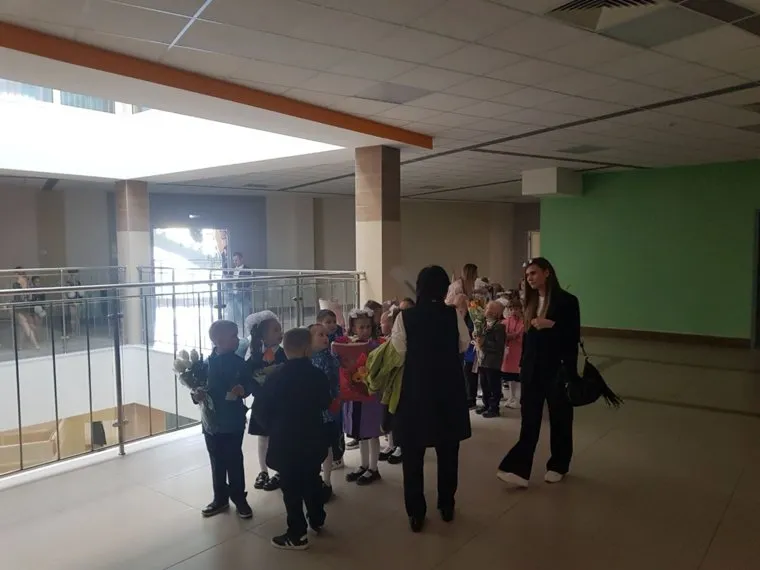 10:55 Ученики лицея №100 отправились на классные часы. В учреждение сперва заходят первоклассники. После них — 11-классники и 9-классники.