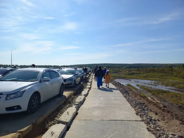11:52 Так выглядит путь к новой школе №133. Все заставлено машинами, родители с детьми идут пешком.